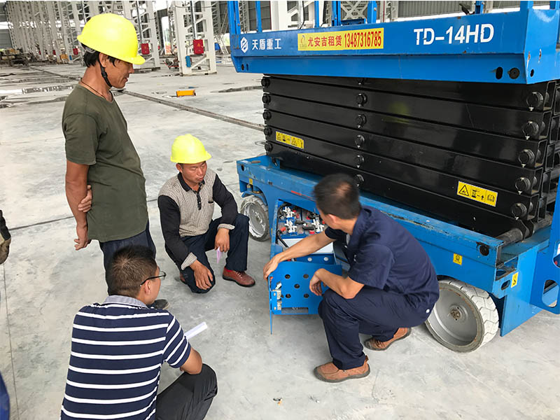 剪叉的使用过程中,也出现了一些小问题,比如在开始工作的第三天,机器工作正常,却无法升降作业,到现场后发现升降机堆放了过多的物料,特别是延升平台上堆积了过多的物料,如果操作手再站在上面,就无法上升了。但在使用者的眼里,这些都不是小事。经过我们的指导后,在整个施工过程中,再也没有出现任何故障,原本需要60多天的工期,提前10多天完成了工作。